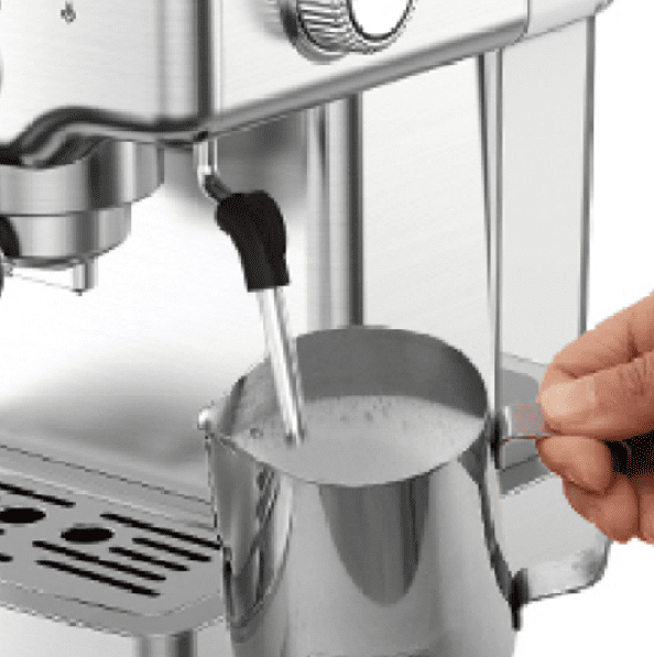 Powerful milk steamer: an espresso machine with a milk foam machine has a stable steam bar that can turn the milk into a silky, smooth microfoam. Latte coffee machine for you to create latte, cappuccino, mocha or pure white coffee art at home or office. The detachable foaming nozzles make cleaning easy.