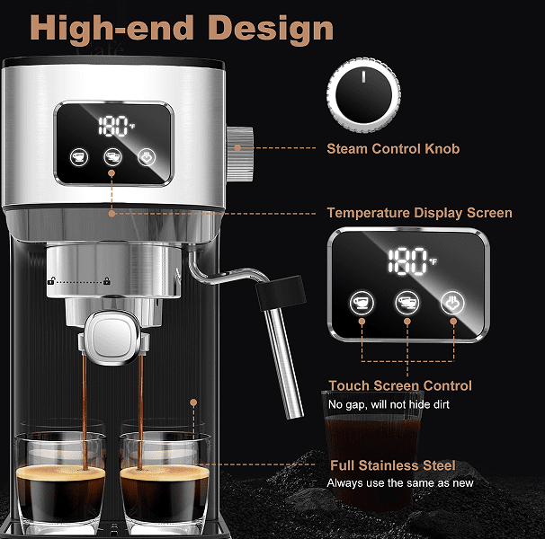 Enhanced 20Bar extraction capability- -Experience the rich aromatic essence of the espresso coffee coffee using our advanced 20 bar high-pressure extraction system. Unleash the full potential of coffee beans for a truly extraordinary espresso experience.