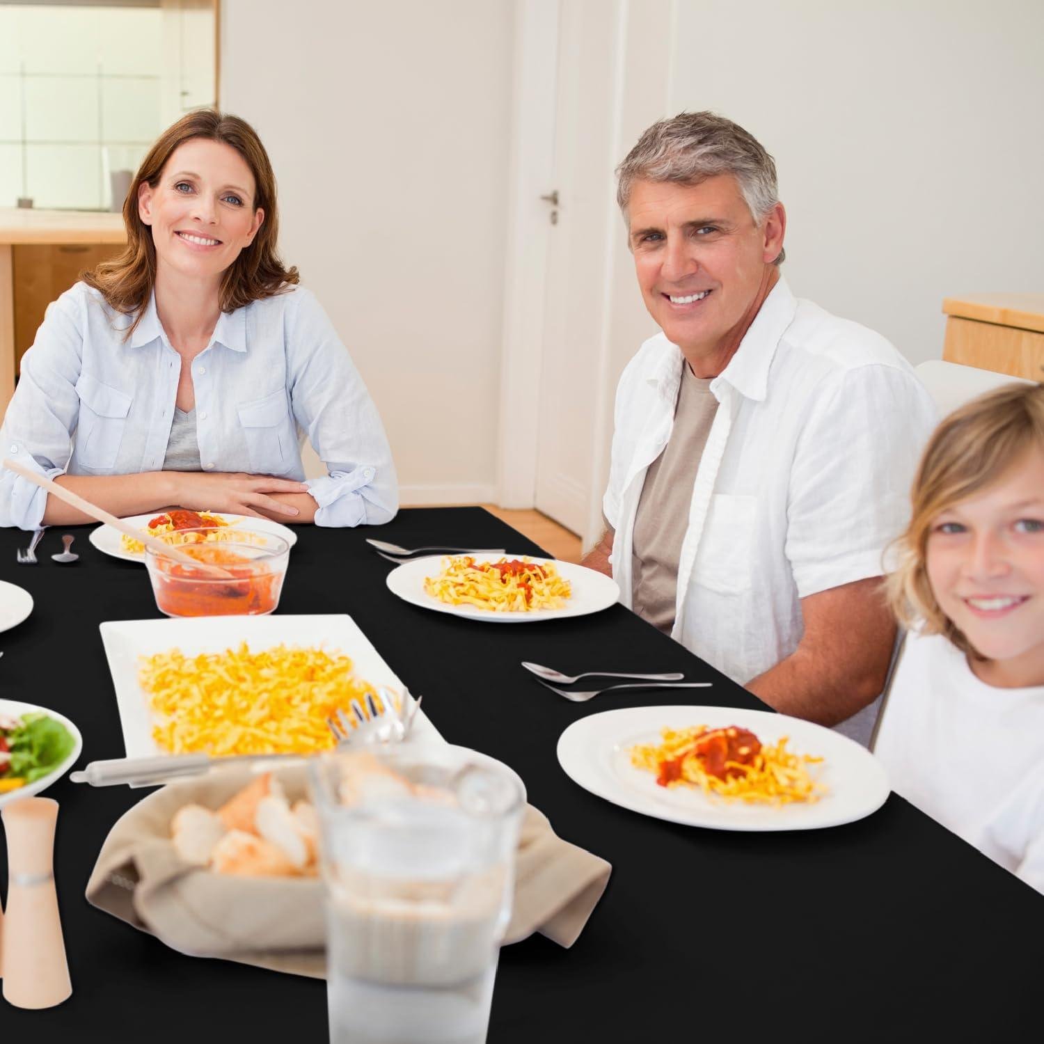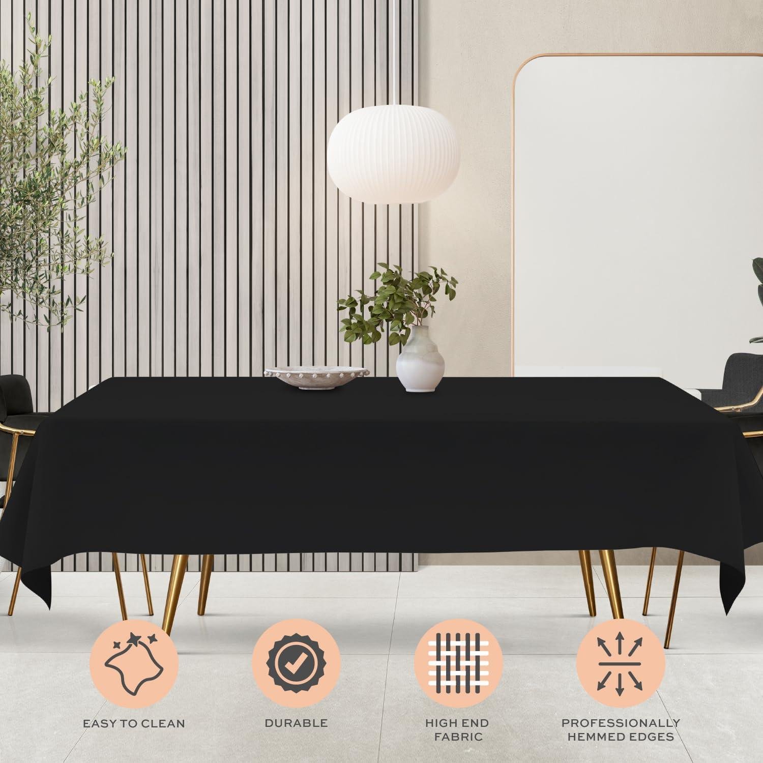 2.seamless design & wrinkle free convenience - durable stain resistance and wrinkle free design make use easier than most cotton & linen cloths; elegant hemmed edges and seamless construction of black table cloths make it the perfect choice for every family;