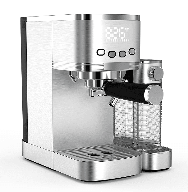 The 20-bar pressure system and temperature display-High pressure ensures that the water optimally interacts with the coffee grounds to produce a stronger, more fragrant coffee cup. Real-time temperature display ensures that your coffee is brewed at the ideal temperature, bringing flavor and taste to perfection.