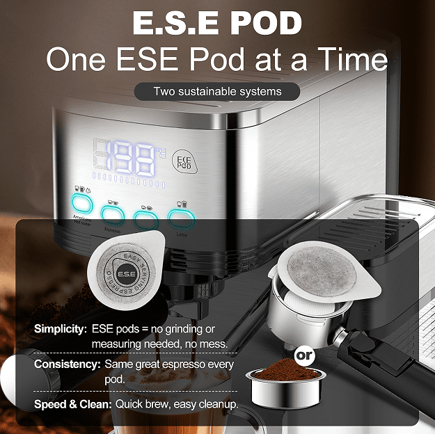 ESE pod Filters, Single and Double Filters options-Single filters offer concentrated flavor, double filters offer bolder brewing, while ESE pod filters offer fast, clutter-free convenience. Whether you prefer a single espresso or a full-bodied double espresso, these filters serve your needs.