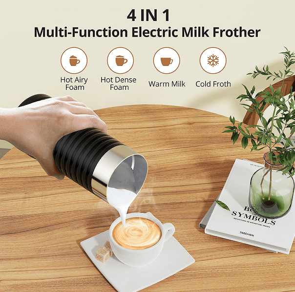 Hot and cold foaming: The milk foam appliance comes in 4 adjustable temperatures to provide your perfect foam with-45°C / 55°C / 65°C and cold foaming. Perfect for making hot coffee and iced coffee, and taste the rich taste of mellow coffee.
