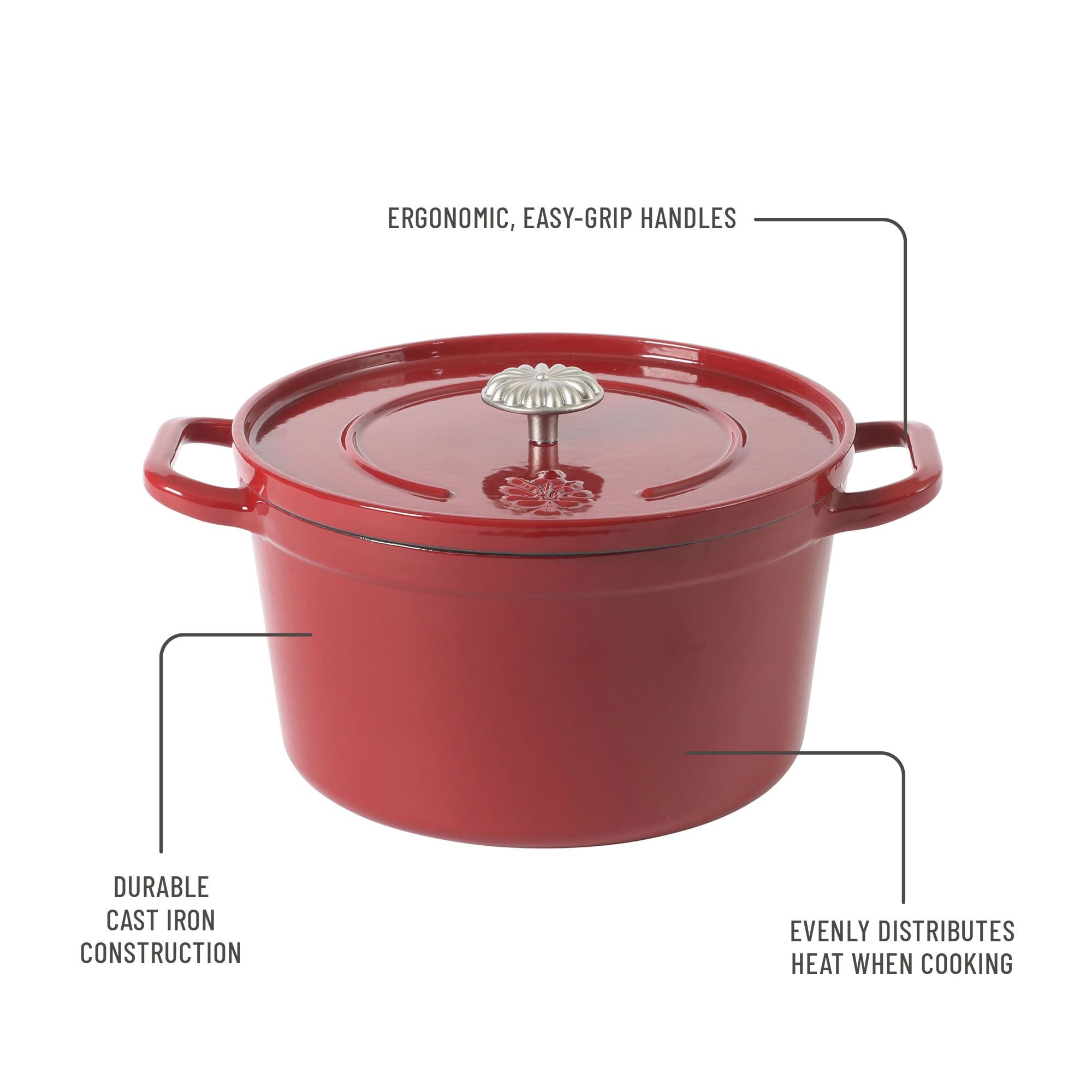 5-Quart Enamel Cast Iron Dutch Oven with Lid, Red