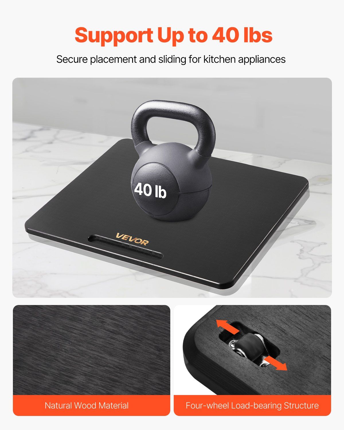 Made of durable material with a 0.7-inch thick design, this appliance slider supports up to 40 lbs. It's ideal for heavy kitchen appliances, making adjustments easy without wobbling.