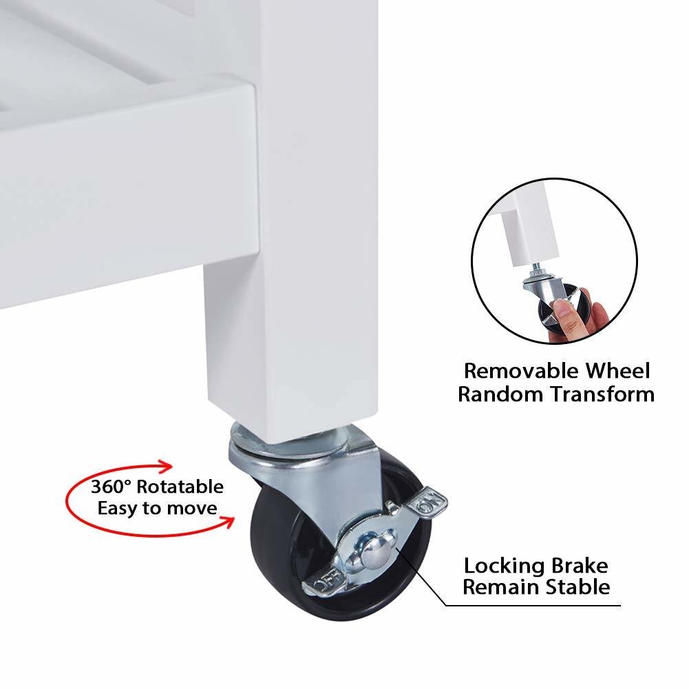 3.Easy to move and strong stability - The small kitchen island cart has 4 wheels and two of them are lockable, which enable stability of the bar cart kitchen island at all times. When cutting, the wire kitchen cart is not easy to slosh. After the upgrade, the TPR wheels are more noiseless, hard weari