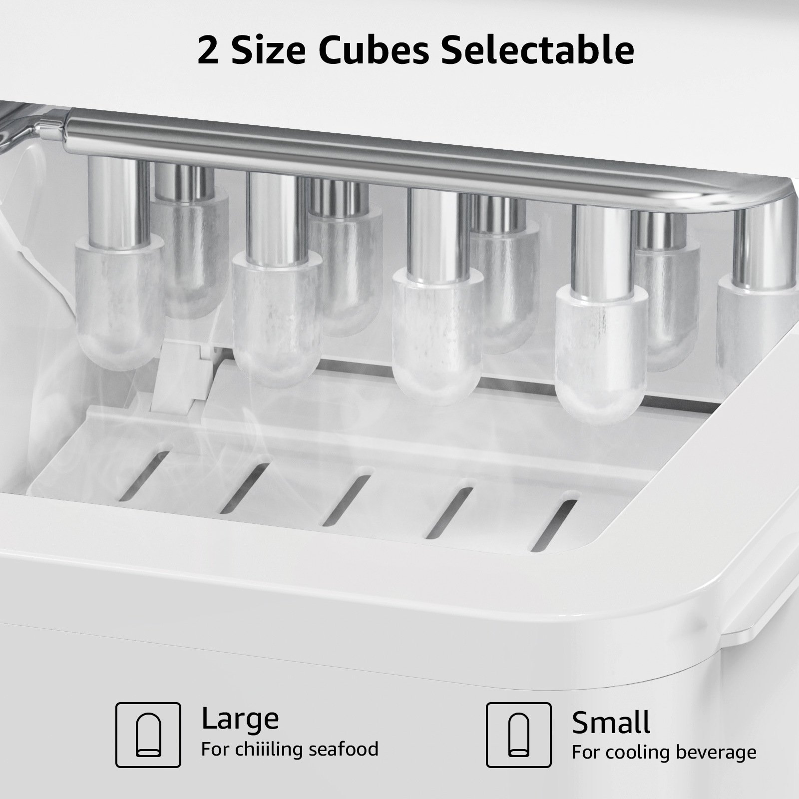 【Two Bullet-shaped Ice Cube Sizes】This ice maker has two sizes of ice cubes to choose from to meet your different needs.The ice cubes come out smooth and clean, don't stick, and fit add well in any drink.Small ice cubes can be used to refrigerate seafood and beer, while large ice cubes can be used for drinks or alcohol to make your life more colorful.
