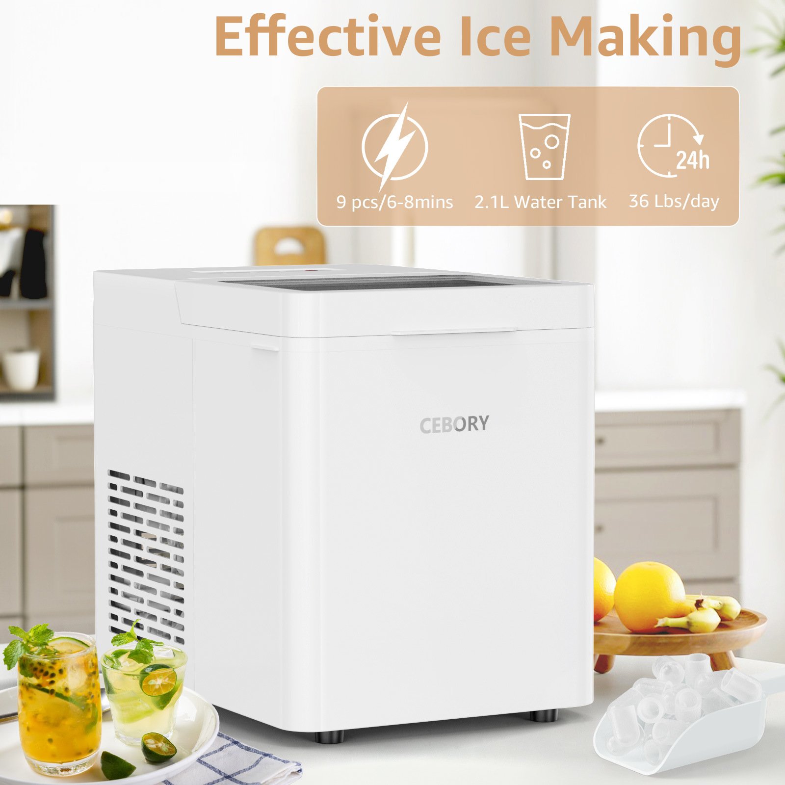 【6 Minutes Quick Ice Making 】CEBORY Countertop ice makers takes just 6 minutes to get 9 bullet-shaped ice cubes, with a 36LB capacity of ice cubes in 24 hours.Making ice is fast and efficient, so you can always enjoy fresh, cool ice cubes.It can not only be placed at home but also can be used at any time in restaurants, motorhomes, bars, KTV, and offices.Let you and your family and friends enjoy a fun and refreshing time!