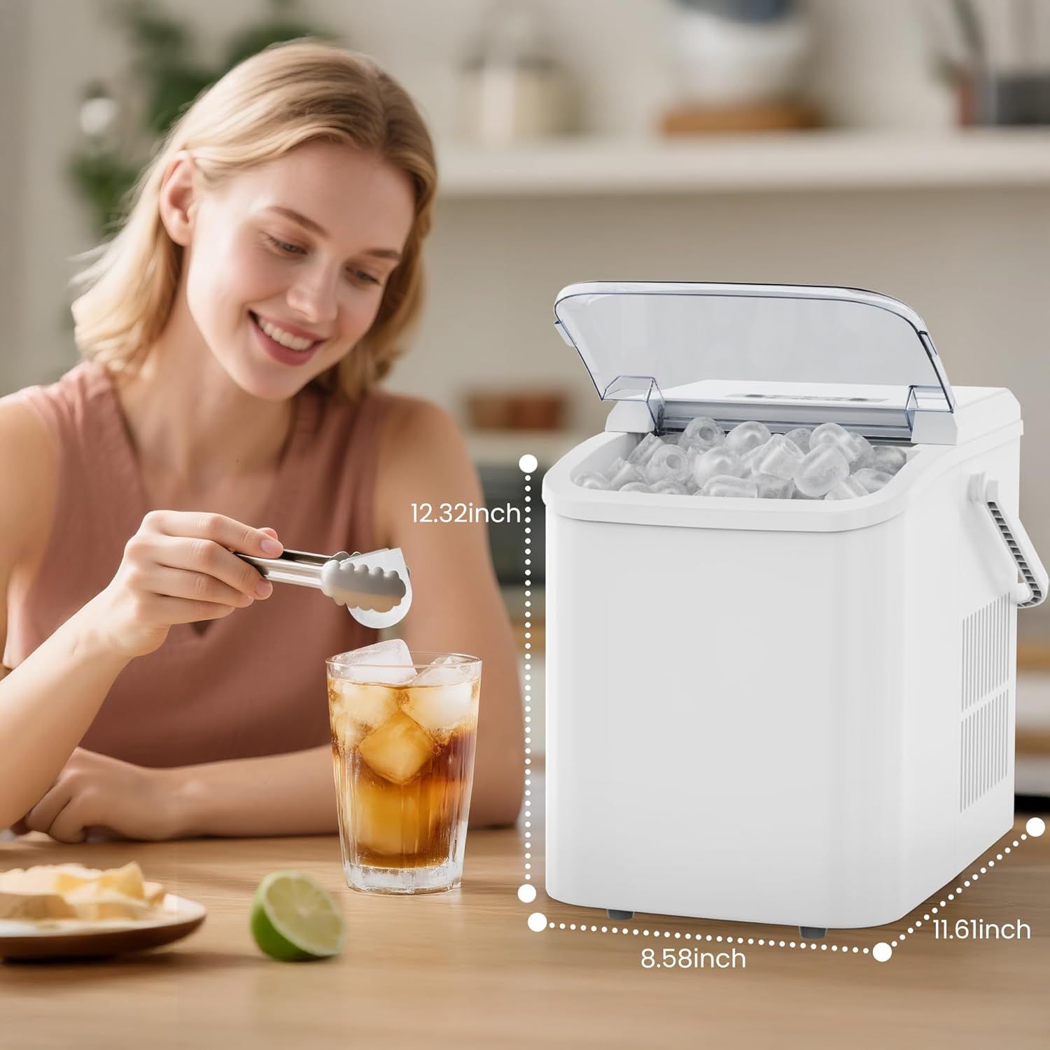Built-in automatic cleaning function. Press the power button for 5 seconds to start. Keep the machine clean and the ice cubes fresh. Combined with detachable ice trays and ice scoop, it is convenient to take and clean, making daily maintenance more convenient.