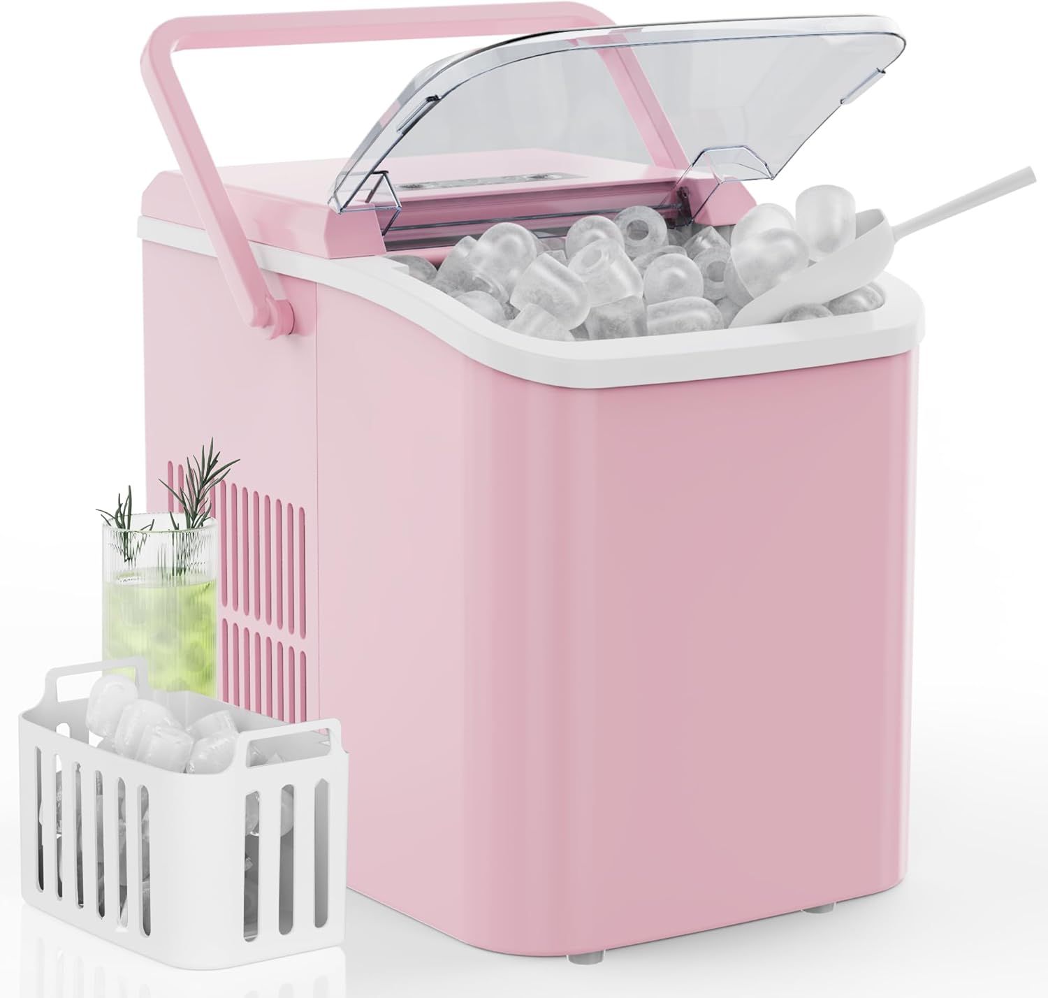 Desktop ice maker, it only takes 6 minutes to produce 9 bullet-shaped ice cubes. With a 1.5L water tank, the maximum daily ice-making capacity can reach 26.5 pounds, meeting various needs such as daily household use, gatherings with friends, and beverage preparation. The transparent window design allows you to observe the ice-making process in real time.