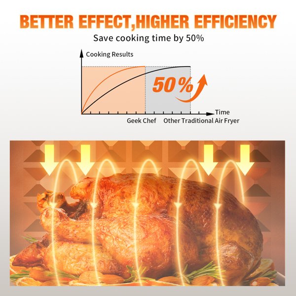 • [Healthy; Powerful; Easy] ETL listed for safety; 1400W strong Power makes super Efficient to cook food in the Healthiest way by cutting over 85% of fats. With visual window makes it easy to monitor progress as food cook. And Easy to clean.