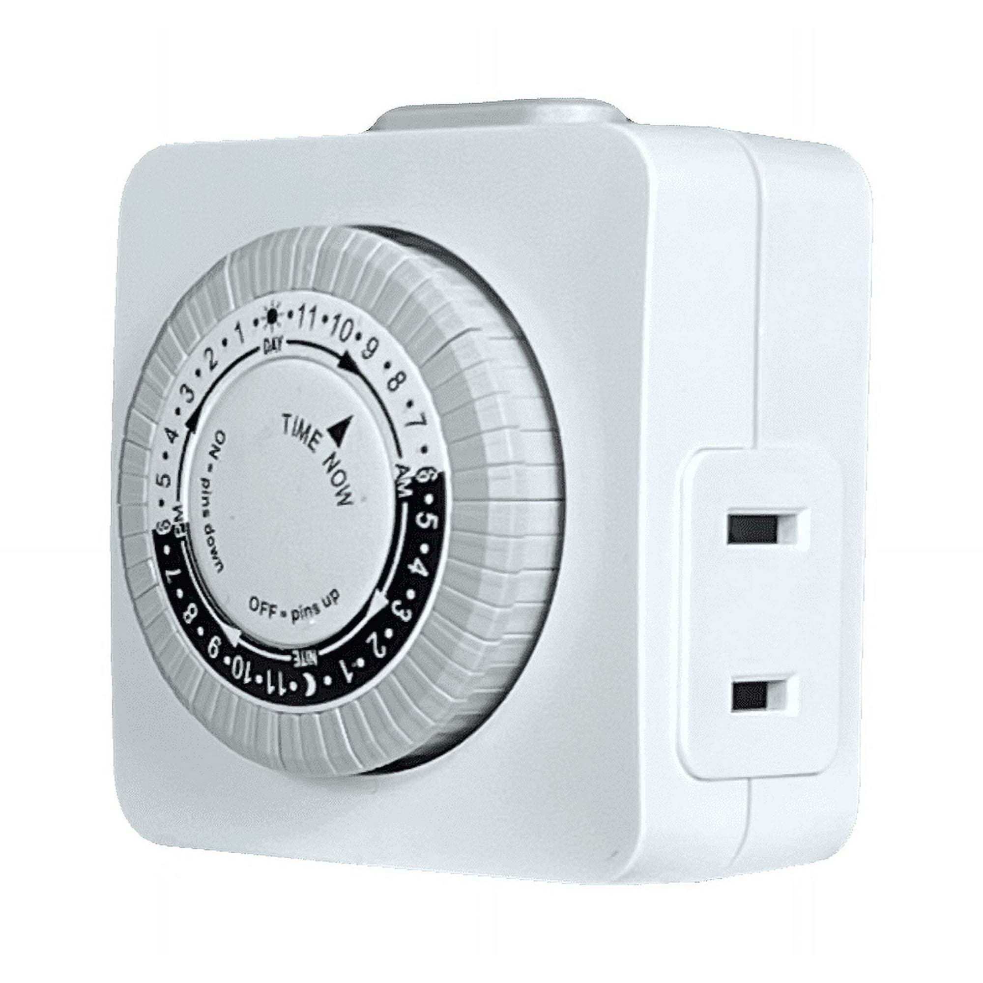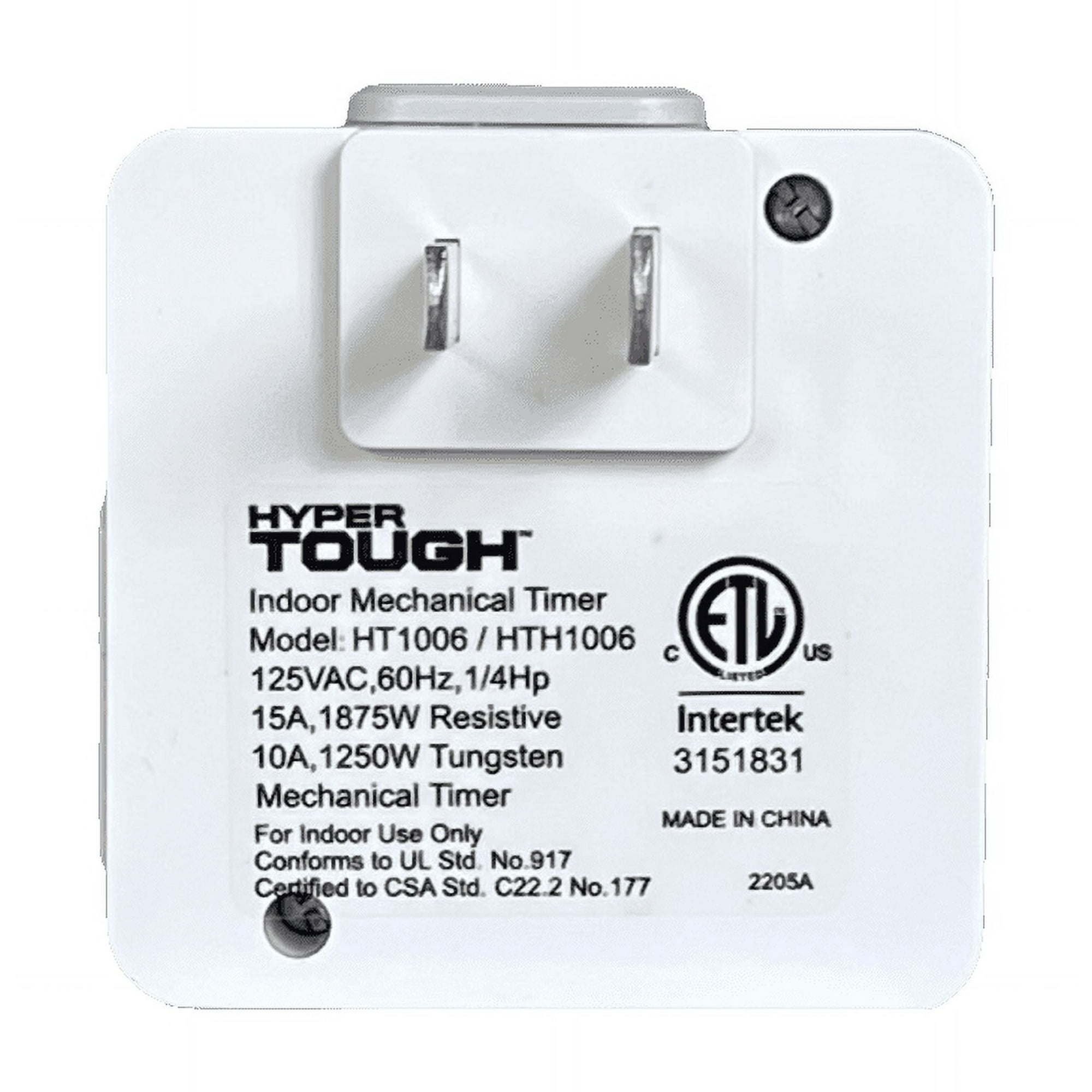 Bring convenience and peace of mind to your daily routine with the Hyper Tough Indoor Analog Mini Timer. Perfect for effortlessly managing your home’s lighting and electronic devices, this compact and reliable timer allows you to set customized schedules that fit your lifestyle. Whether you want your lights to welcome you home after a long day or keep your holiday decorations shining bright at just the right times, this timer makes it easy to automate and personalize your home environment.Customizable Automation: Program up to 24 ON/OFF cycles per day in 30-minute intervals, allowing you to tailor your lighting and device usage to your specific needsEasy to Use: Simply plug the timer into any indoor outlet, attach your appliance, and set the desired on/off times by pushing pins down (on) or pulling them up (off)Energy and Money Saving: Reduce overuse of electricity by ensuring devices are only on when necessary, helping to lower your utility billsEnhanced Security: Keep your home safe by having lights turn on automatically while you’re away, giving the appearance that someone is homeVersatile Application: Ideal for controlling lights, fans, holiday decorations, and other electronic devicesIndoor Use Only: Designed specifically for indoor environments with a single polarized outletDurable and Reliable: Built to last with a sturdy design, ensuring consistent performancePower Rating: 125VAC, 60Hz, 15AOutlet Configuration: 1 Polarized OutletUsage: For indoor use only1 Hyper Tough Indoor Analog Mini Timer with 1 Polarized Outlet