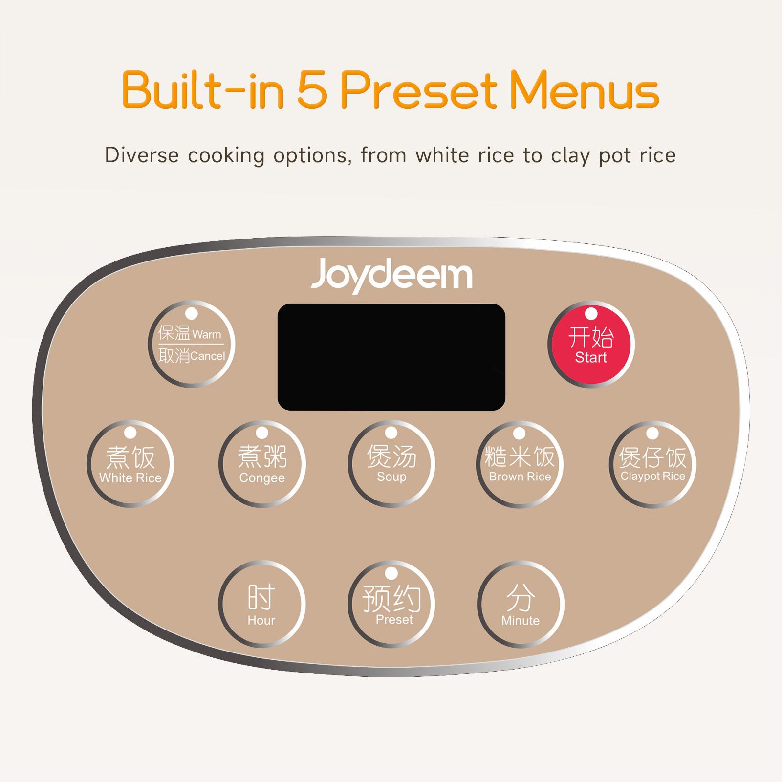 2.6 Preset Cooking Functions: Enjoy versatility with preset options including Rice, Porridge, Soup, Clay Pot Rice (with a delicious crust), Multi-Grain Rice, and Reheat. Simple operation meets a variety of cooking needs, making meal preparation effortless.