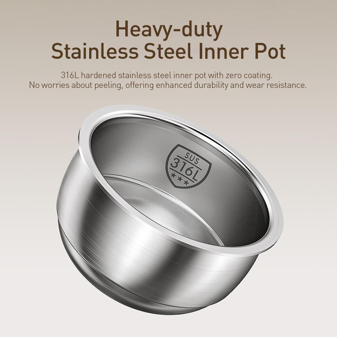 1.Healthy and Durable Stainless Steel Inner Pot: The Joydeem Rice Cooker features a 316L stainless steel inner pot that is more wear-resistant and built to last. The coating-free design ensures no worries about peeling, making it safe and healthy perfect for health-conscious families.