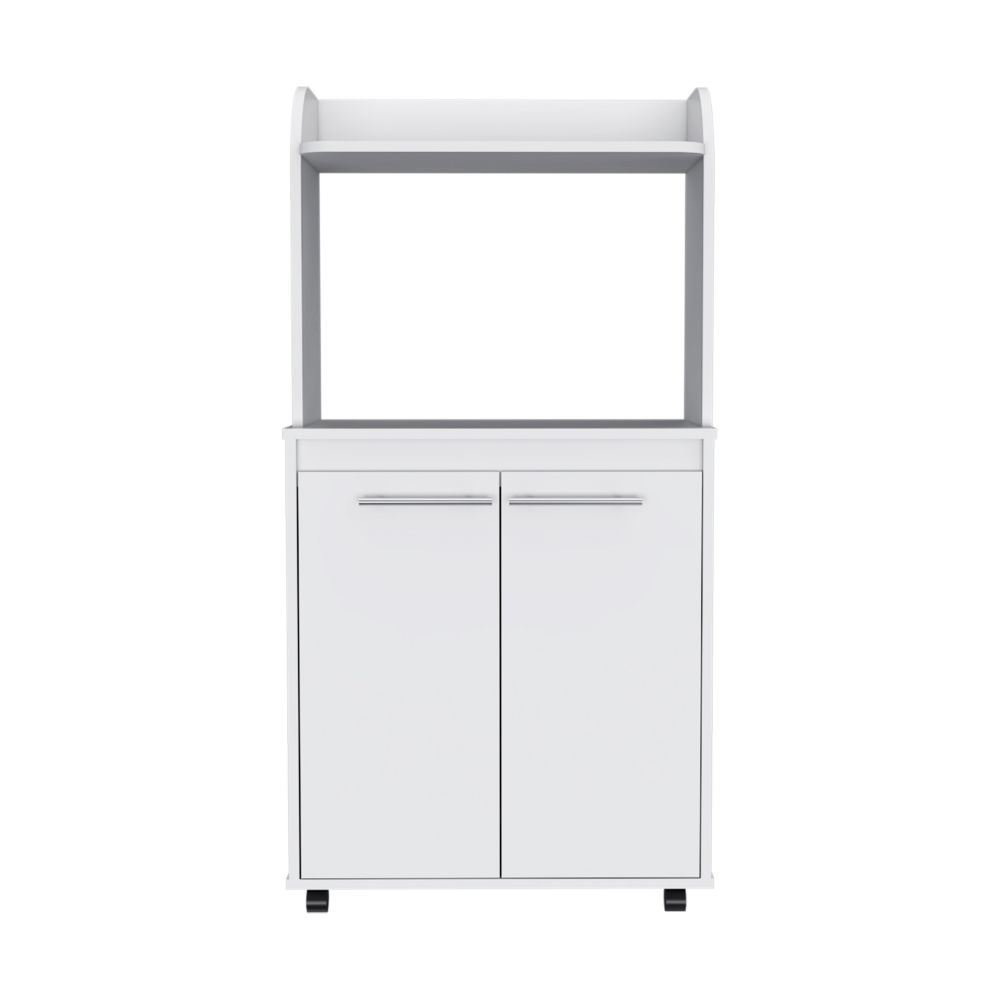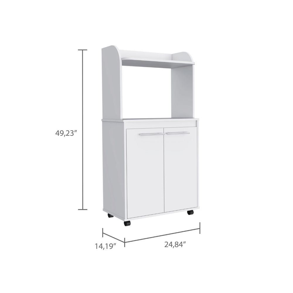 Kitchen Cart Totti, Double Door Cabinet, One Open Shelf, Two Interior Shelves, White Finish