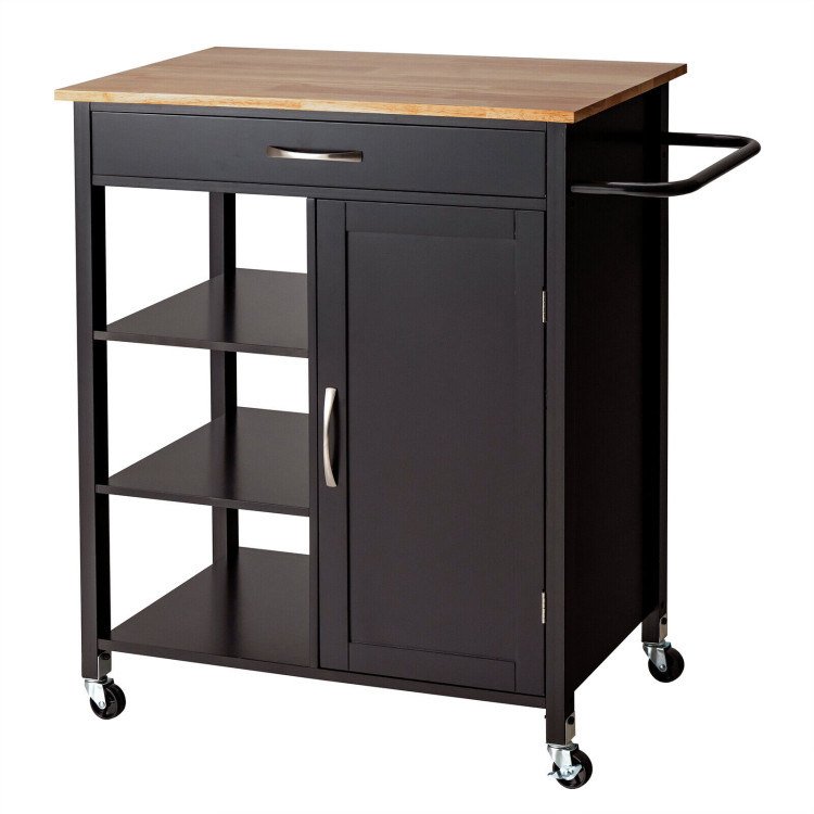 Mobile Kitchen Island Cart with Rubber Wood Top