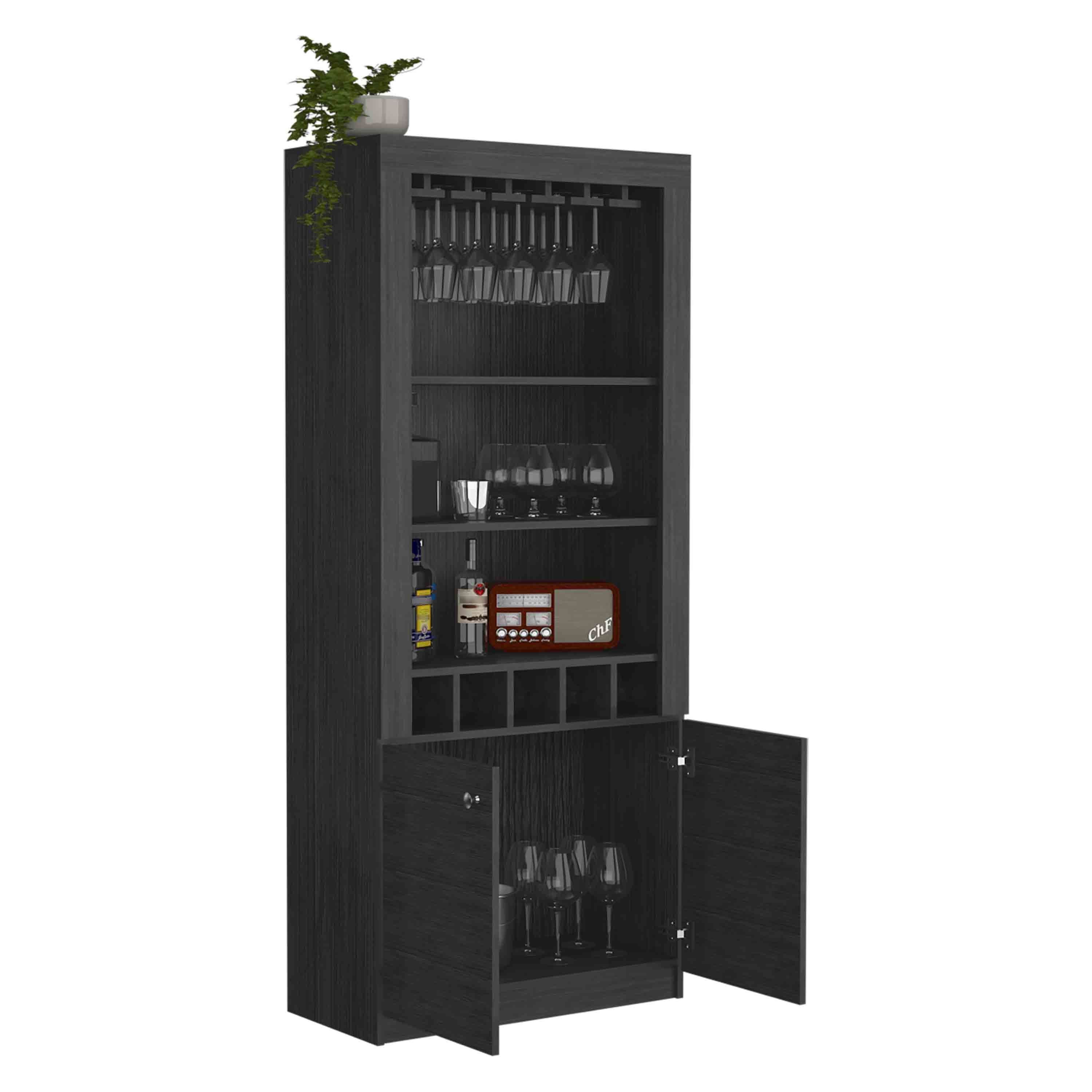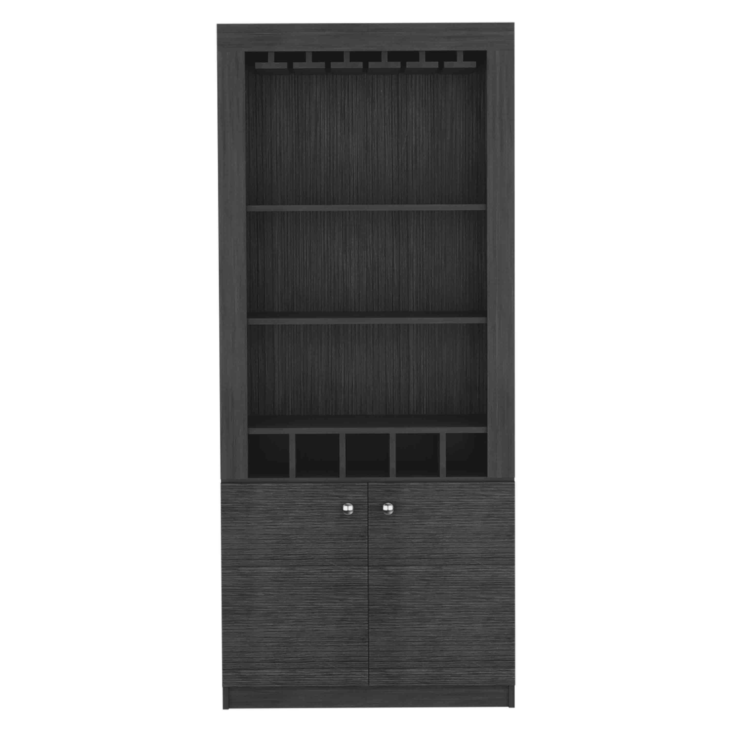 Montenegro Bar Cabinet, Double Door Cabinet, Five Built-in Wine Rack, Three Shelves -Smokey Oak