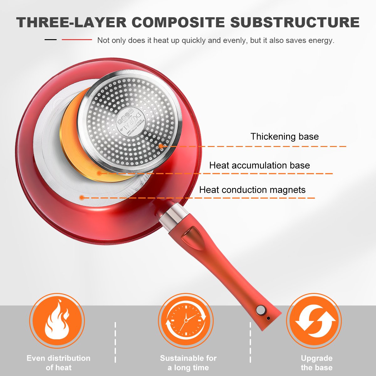 Nonstick Pot and Pan Set-Wok, Soup, Milk Pot Set RED