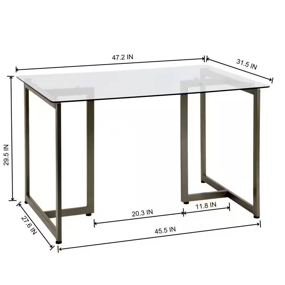 Modern 47-inch x 31-inch Tempered Glass Top Dining Table with Gold Metal Frame