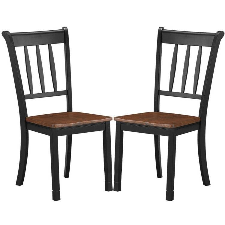 This is the high quality dining chair that is made of selected rubber wood, showing a stable and safe structure. The Set of 2 Solid Wood Black Mission Style Armless Dining Chairs with Brown Seat is the indispensable part of each kitchen. The design embodies the modern form and the simple line, and connects the structural parts simply and cleanly. A slightly curved back gives a soft comfort and good support. What's more, the seat enjoys W-shaped design that could effectively spread the pressure and improve the sitting experience. Let the chair become your dining chair, book chair, leisure chair, and let it decorate your bedroom, dining room, kitchen, and living room. If you are looking for a high quality dining chair, don't hesitate to buy it!
