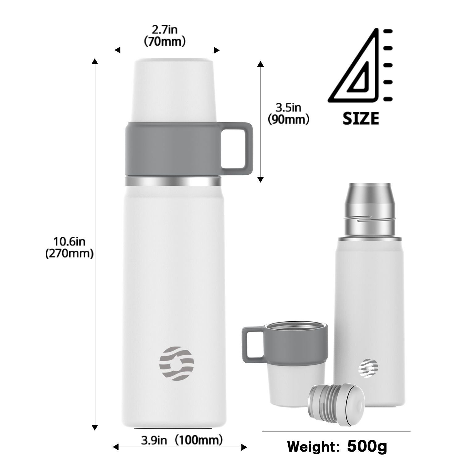 Healter 850ml Travel Vacuum Flask; Water Thermos Bottle for Coffee; Built-in Lid Cup; Stainless Steel; Thermal Tea Mug; Sport Bottles