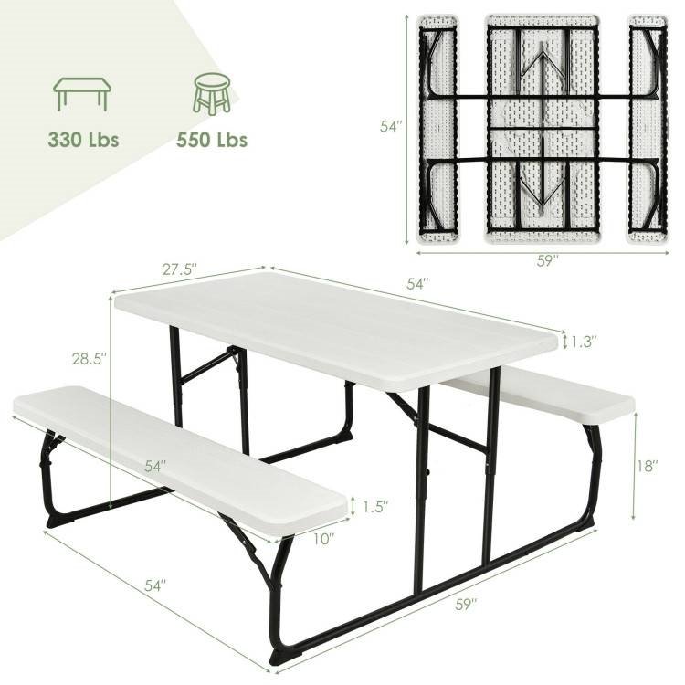 Folding White HDPE Picnic Table with 2 Benches Outdoor Patio Furniture Set Folding White HDPE Picnic Table with 2 Benches Outdoor Patio Furniture Set Folding White HDPE Picnic Table with 2 Benches Outdoor Patio Furniture Set Folding White HDPE Picnic Table with 2 Benches Outdoor Patio Furniture Set Folding White HDPE Picnic Table with 2 Benches Outdoor Patio Furniture Set