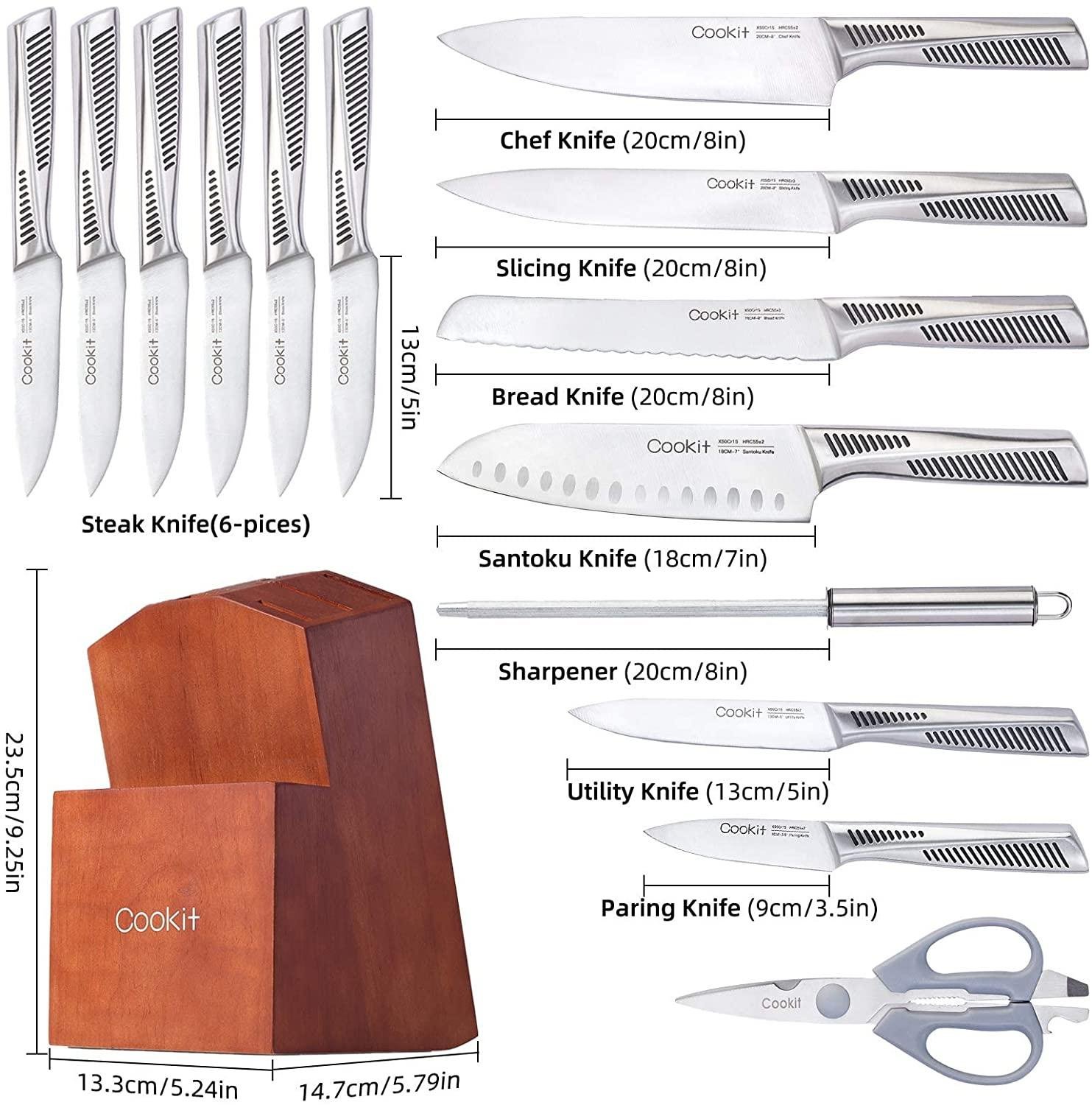 Home > Kitchen Knife Set; Cookit 15 Piece Knife Sets with Block Chef Knife Stainless Steel Hollow Handle Cutlery with Manual Sharpener