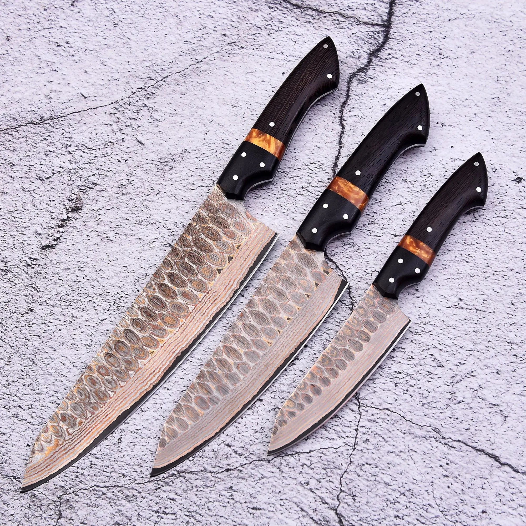 Smoky | Copper Damascus Knife | 3pcs Knife Set | Faneema Cutlery