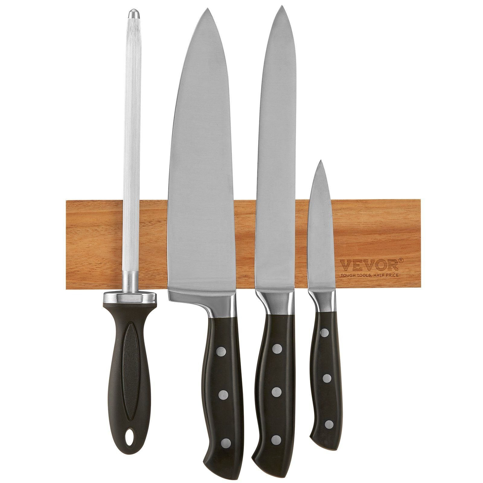 2.Premium Acacia Material: Crafted from durable natural Acacia wood, this knife bar offers both strength and aesthetics. The ventilated and breathable design keeps knives dry, making it easy to clean and maintain. It accommodates a variety of knife types and sizes securely.