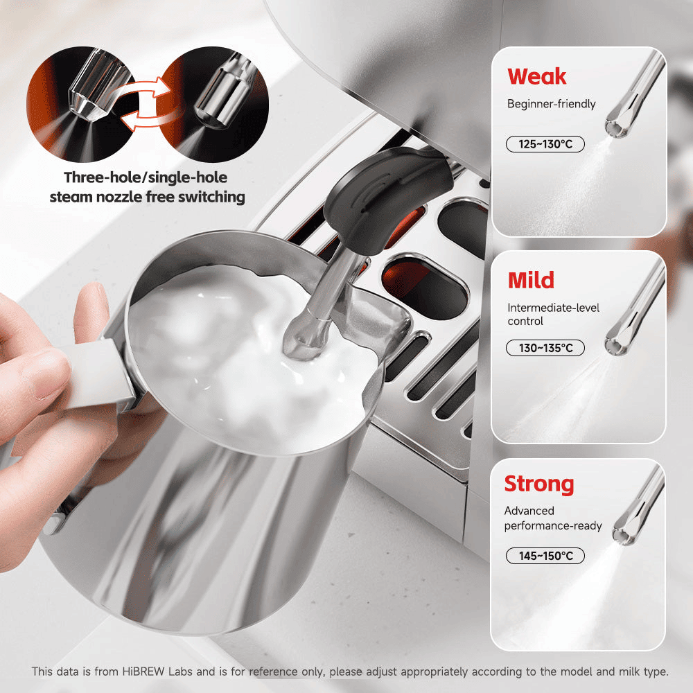 Three steam levels for versatile cappuccino art creation.