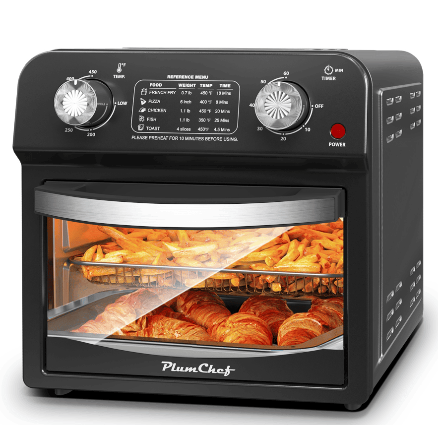 SKU: W1002P292365 12.5 Quotation 7-in-1 Convection Oven, 1500W,5 preset menus, pizza, baking, roasting, grilling, toasting, dehydration, defrosting, 11.8L smart oil-free cooking air oven, separate oil filter, 360° air circulation, timer and non-stick pan, low-fat cooking, mechanical knob, non-stick basket, heat-resistant handle, multi-hole cooling