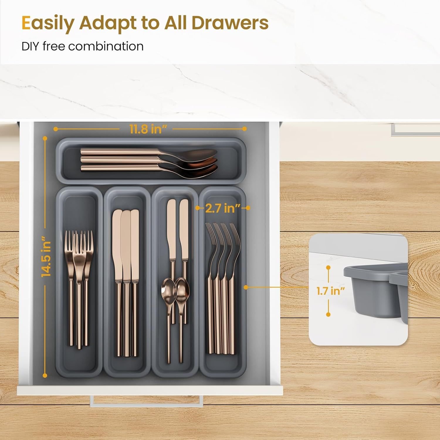 5 Pack Silicone Drawer Organizer for Kitchen, DIY Free Combination Silverware Organizer, Utensil Drawer Organizer