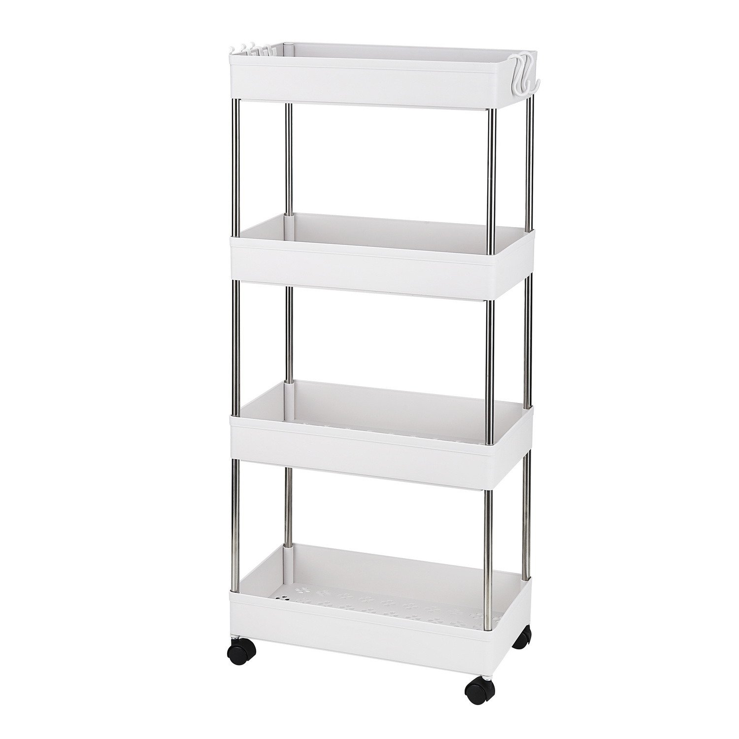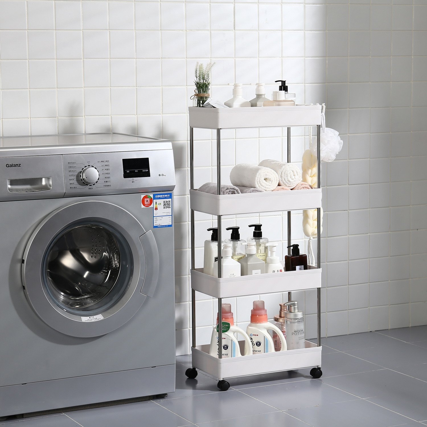 1. The 4-storey structure design of shopping cart can be placed in any small space in your home, including closet, kitchen, bathroom, garage, laundry room, office or between washing machine and dryer