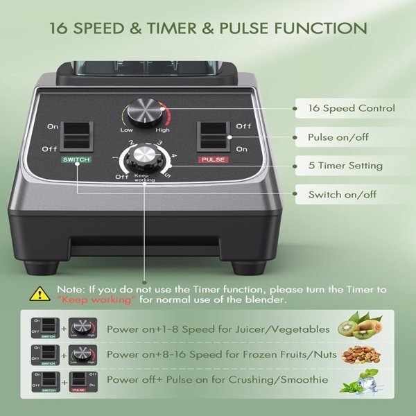• [Multi-use Professional Blender] Our blenders for kitchen have the potential to substitute for as many as 8 different appliances: crush, blend, chop, grind, process, puree, or liquefy. The perfect blender for shakes and smoothies, frozen desserts, soups, nuts, sauces, hummus, dips, juice, and salsas. They provide a multitude of functions, ready to fulfill your diverse requirements.